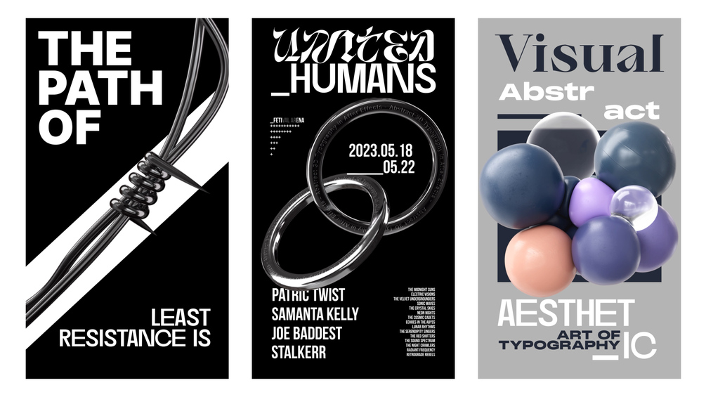 Typography Posters are a series of creative posters where design principles, typography, and 3d animation meet together to make your message pop and leave a lasting impression on your audience.